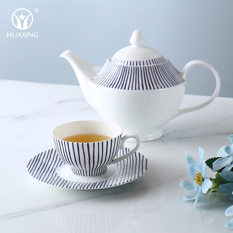 Высококачественный дизайнерский кофейник в полоску для ресторана гостиницы Подарочный сервиз послеобеденного стола чашка под заказ роскошный чайный
