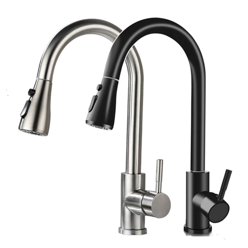 Матовый никелевый смеситель для кухни, настольный смеситель, 360 Вращающийся Распылитель, кухонная раковина, кран для горячей холодной воды