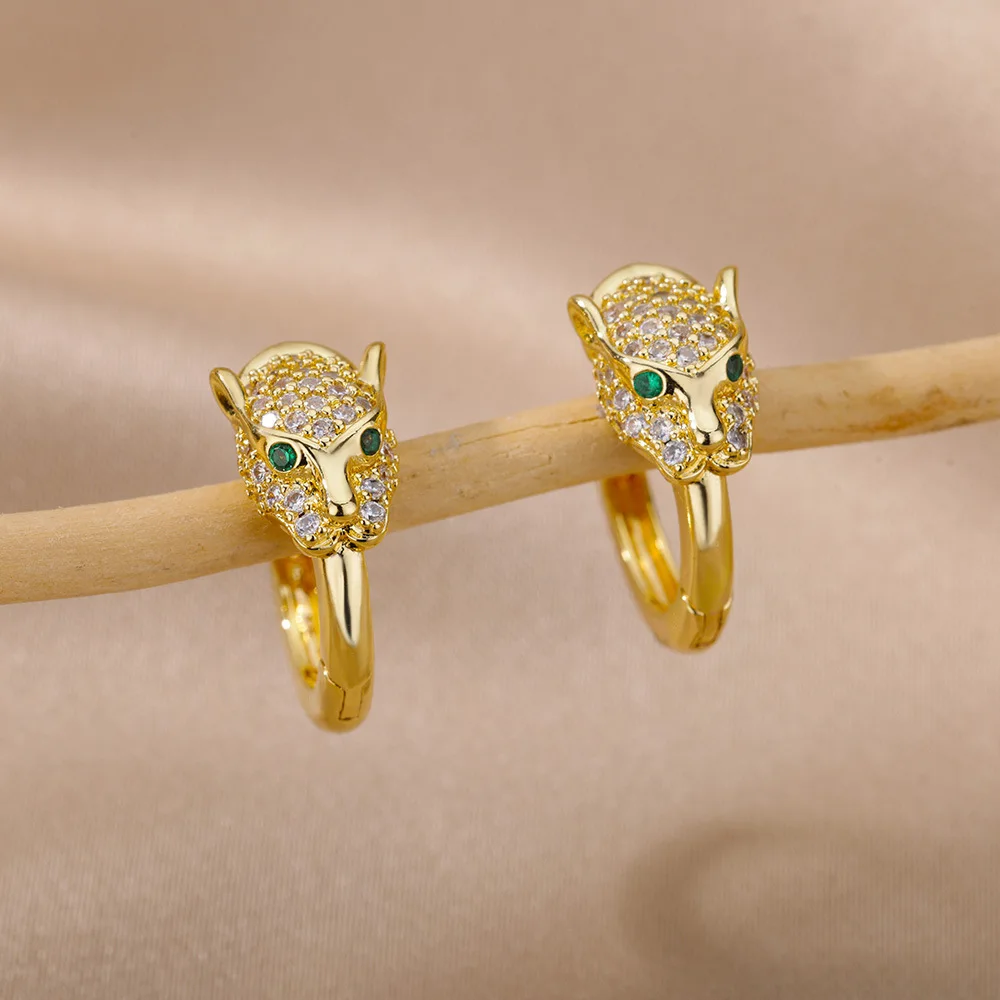 Летние серьги в стиле хип-хоп с блестками и бриллиантами из циркона простые серьги-кольца Huggie изящные изображением животных леопардовой расцветки для женщин