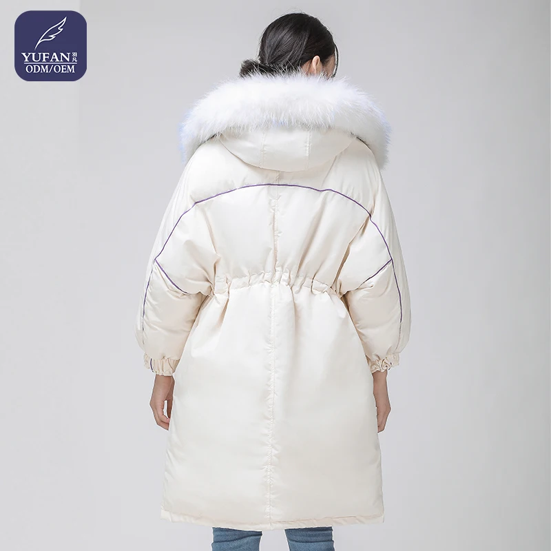 Yufan белые женские пуховики Парка утепленная холодная Флисовая теплая зимняя уличная куртка с капюшоном из меха утиного для женщин