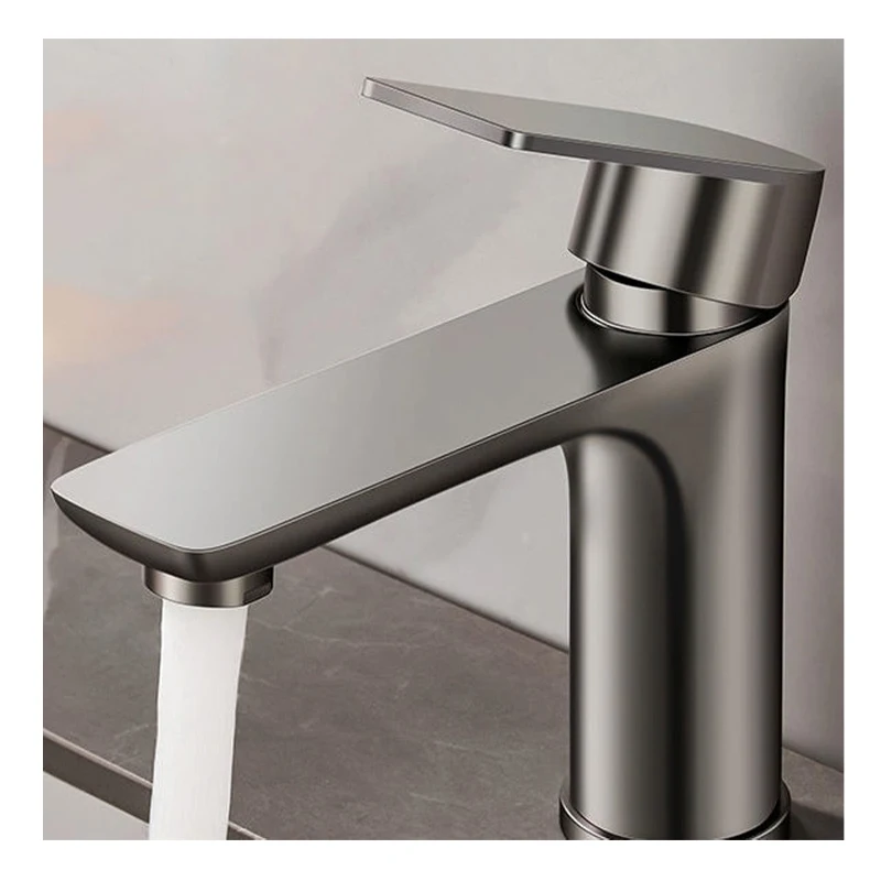Современный смеситель для раковины с одним отверстием от производителя на заказ цвет нержавеющая сталь серая одинарная ручка керамическим сердечником клапана
