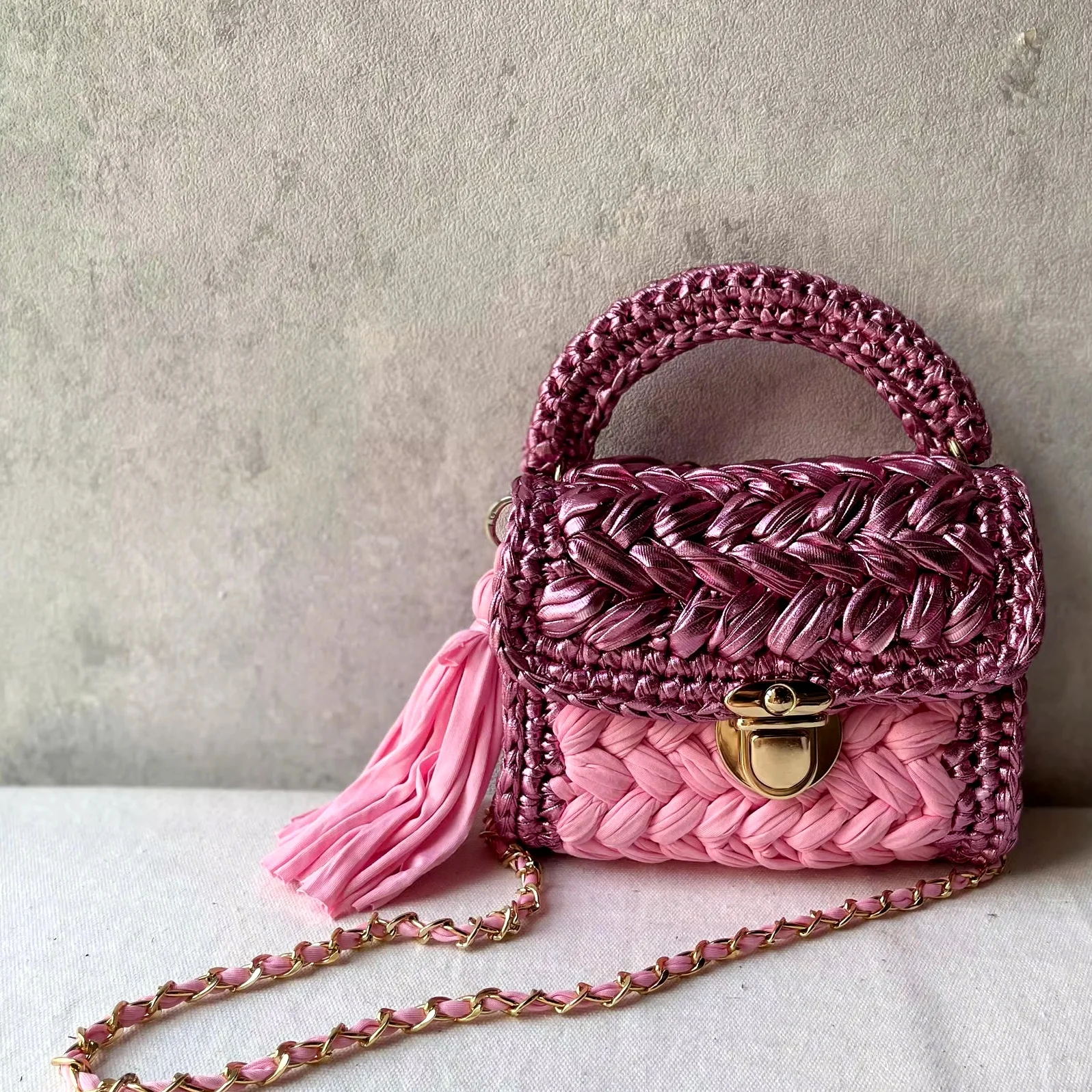 Хит продаж новые женские сумки-тоут из смешанного металлического материала вязанные крючком с льняной сумкой внутри оптовая цена