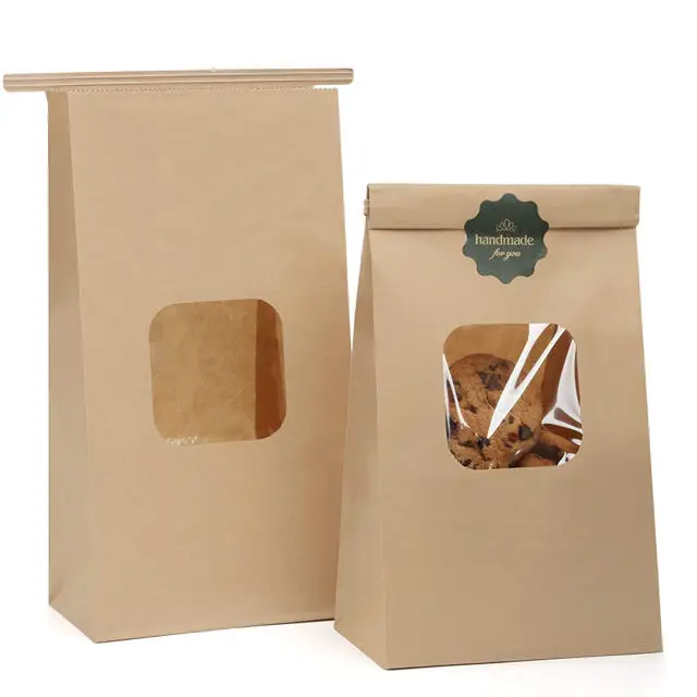 2024 GD-форма для упаковки продуктов коричневая упаковка выпечки с квадратным дном печенья жестяной галстук крафт-бумажный пакет окном 2,21 ₽ - 11,01 ₽
