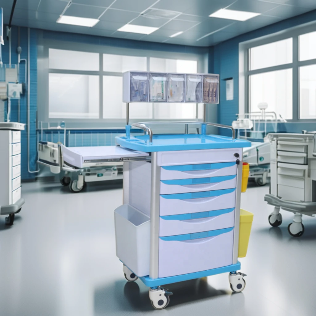 The back of the cart body: the double row and ten pairs of transparent device box can be lifted (convenient to see and quickly take medicine); Single size: 115*98*130*170MM; |