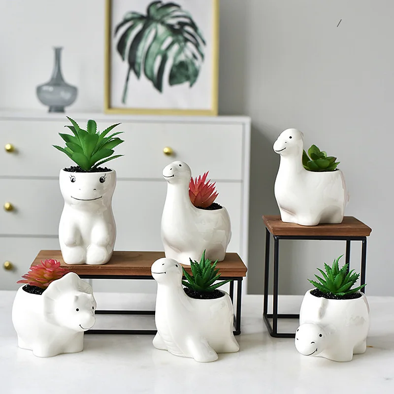 Милый керамический цветочный горшок с отверстием для животных глазированный маленький динозавр дизайн сочных кактусов бонсай использования в торговых центрах