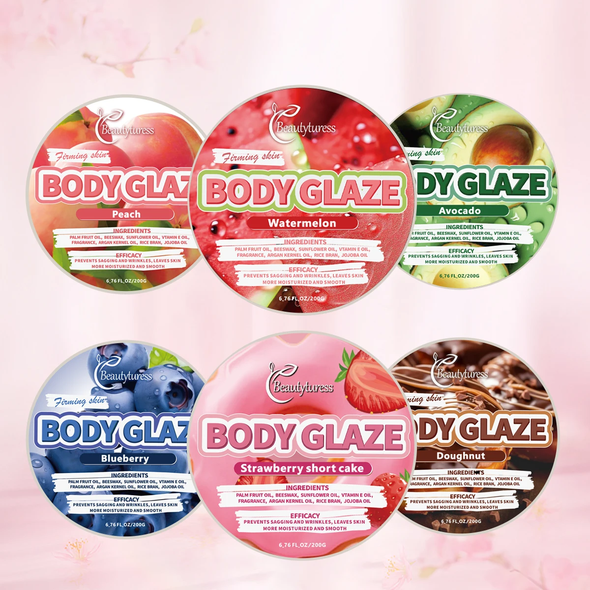 | Main Ingredients | Shea Butter, Argan Oil, Coconut Oil,Sugar, Watermelon, Strawberry, Vanilla, Rose / Customized Ingredients |