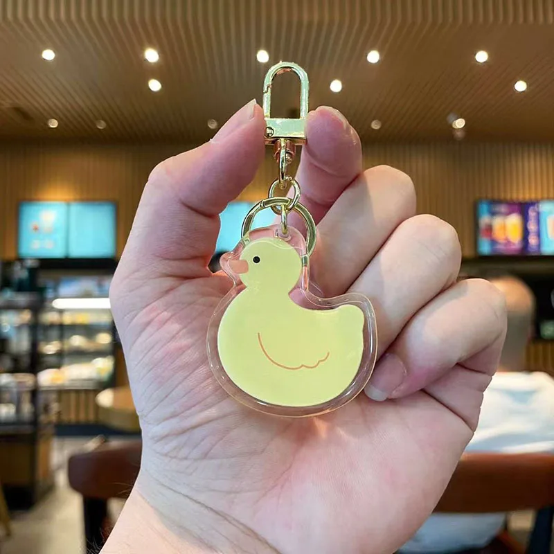 Индивидуальный многоцветный брелок для ключей с плавающей жидкостью уткой из акрила подвесками