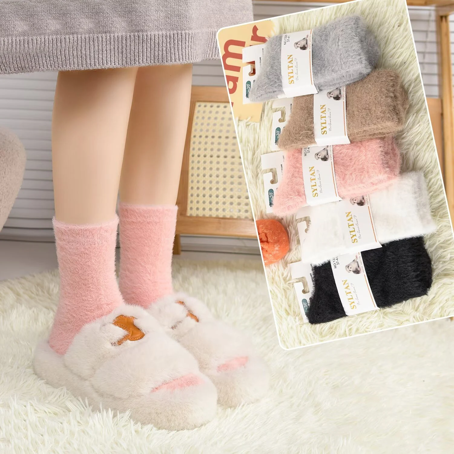 Зимние носки с вышивкой оптовая продажа высококачественные рождественские пушистые удобные милые женские меховые модные для женщин