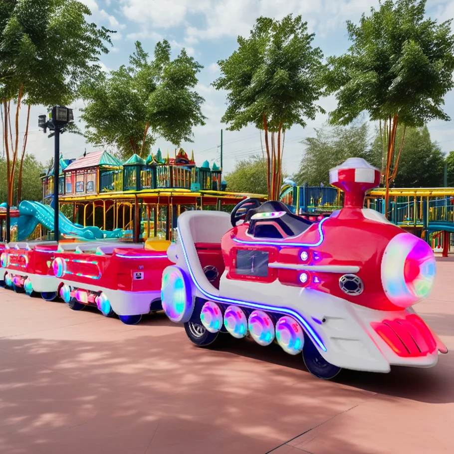 Оптовая продажа открытый Электрический безтрековый поезд для парков развлечений изготовленный из прочного металла и стекловолокна