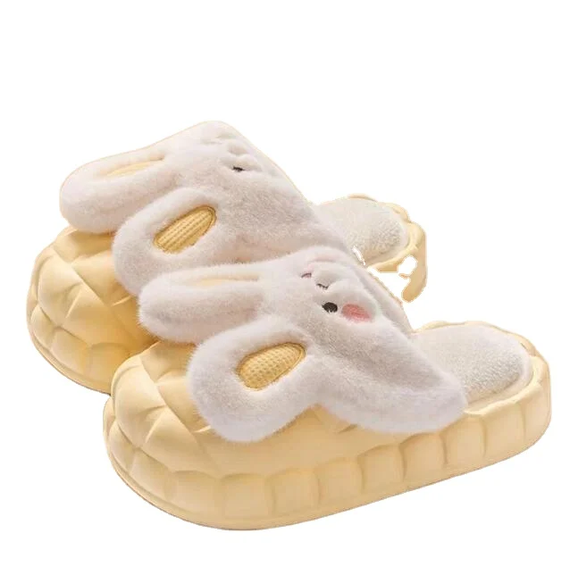Фабричная оптовая продажа высокое качество под заказ плюшевые пушистые домашние тапочки с открытым носком и кроликом 343,97-486,30 ₽