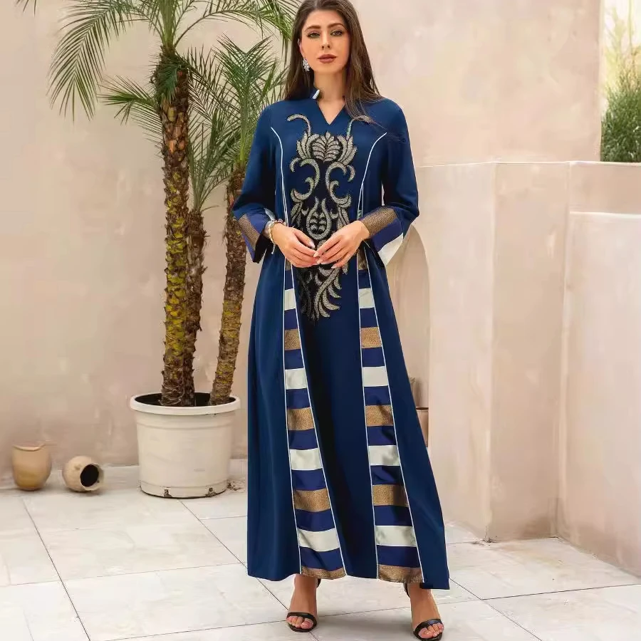 2024 Новая Модная элегантная полоска с принтом пэчворк высокое качество Дубай длинная Абая для женщин из полиэстера для взрослых