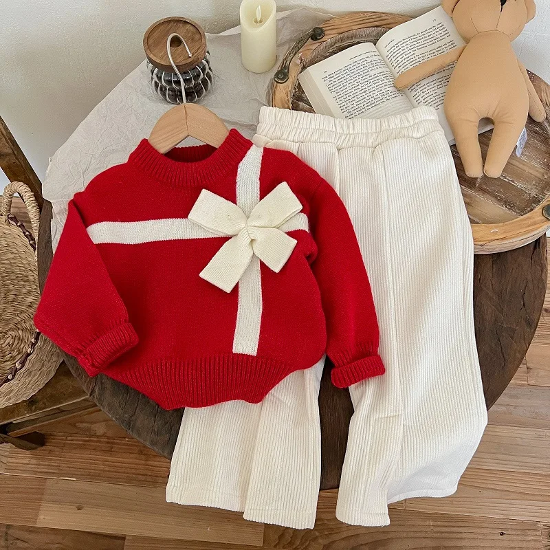 Осенняя Толстовка для девочек комплект одежды Повседневный хлопковый 2024 новый стиль модный кружевной свитер с бантом и юбкой костюм из двух предметов
