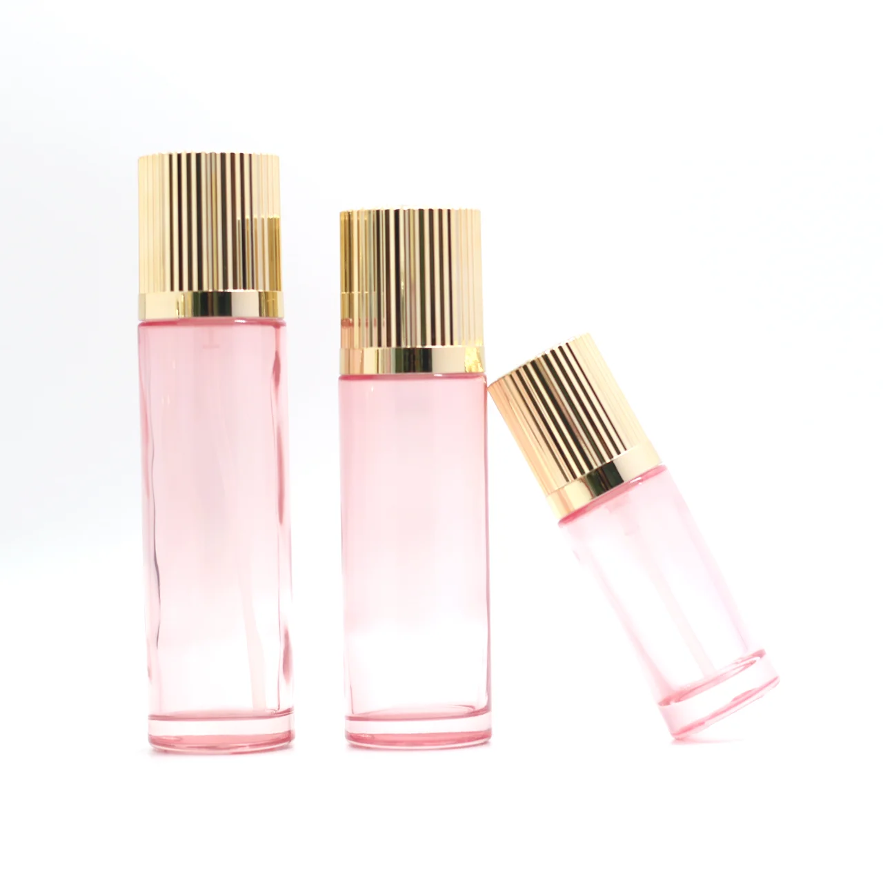 Роскошная стеклянная бутылка для ухода за кожей лица цилиндрические прозрачные розовые бутылки тонера лосьона крема золотой насос верхняя крышка необычная