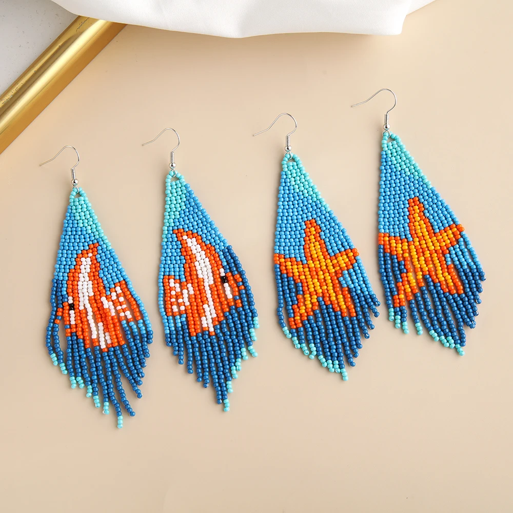 Оптовая продажа Серьги-кисточки в богемном курортном стиле Разноцветные длинные серьги ручной работы уникальные подарки для нее