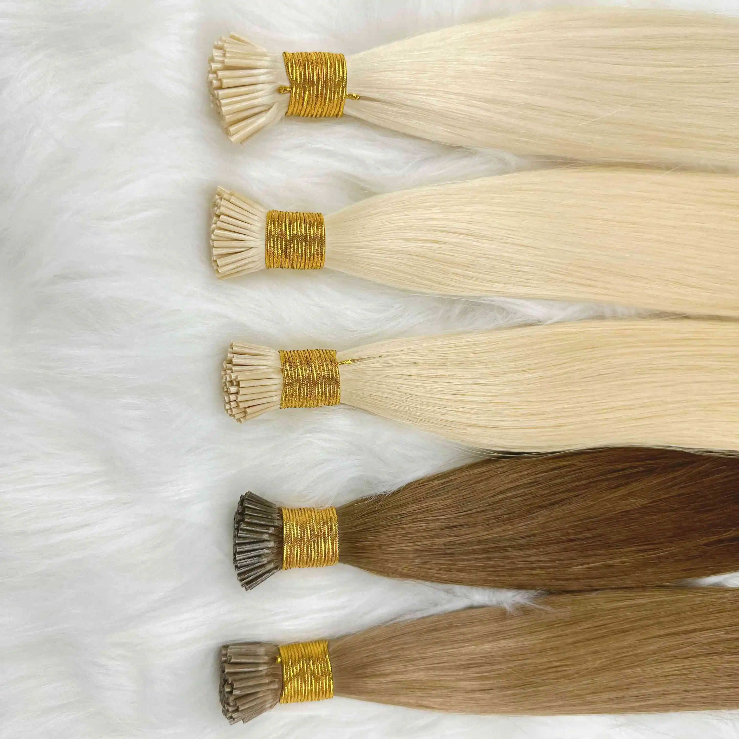 Оптовая продажа итальянских кератиновых клеевых 100% девственных волос выровненных кутикул двухсторонние светлые волосы с плоским кончиком