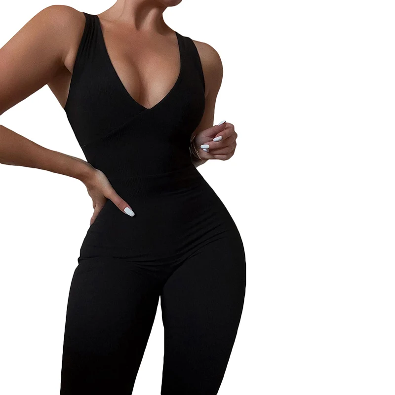 Женская спортивная одежда, цельный комбинезон, боди для йоги, сексуальный комбинезон с низким вырезом