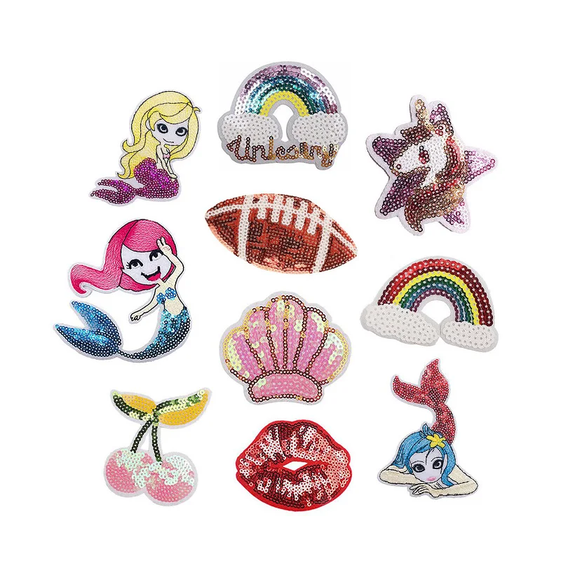Розничная продажа нашивка с вишневыми морскими ракушками радужная Русалка вышивка блестками для одежды 54,39-108,77 ₽