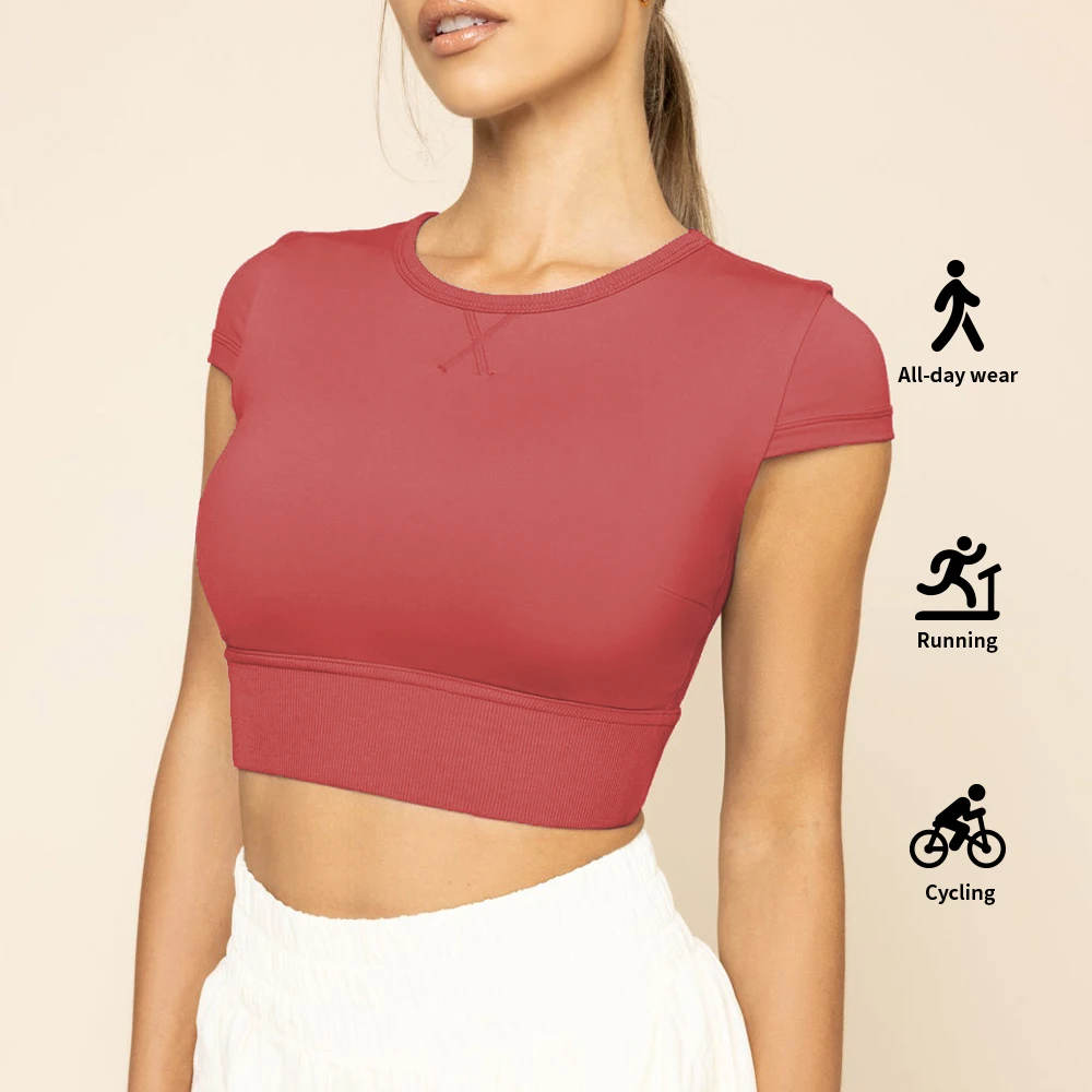 Оптовая продажа Высококачественная футболка для фитнеса женская спортивная одежда спортивный топ с коротким рукавом йоги Лидер продаж