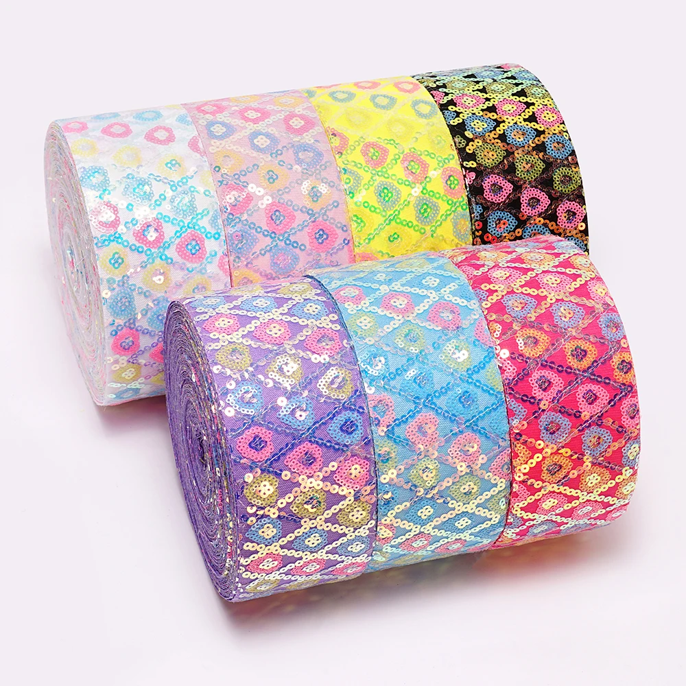 75 мм 25 ярдов Блестящая лента с блестками в форме сердца тюль для упаковки подарков коробка лентой пользовательская вышитая сетка банты волос