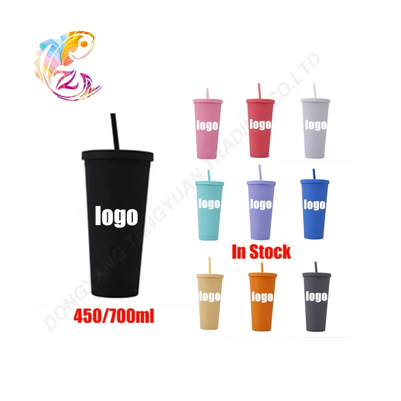 ZP 450/700 мл в наличии многоразовые двухстенные пластиковые стаканы пастельных цветов с крышками и соломой