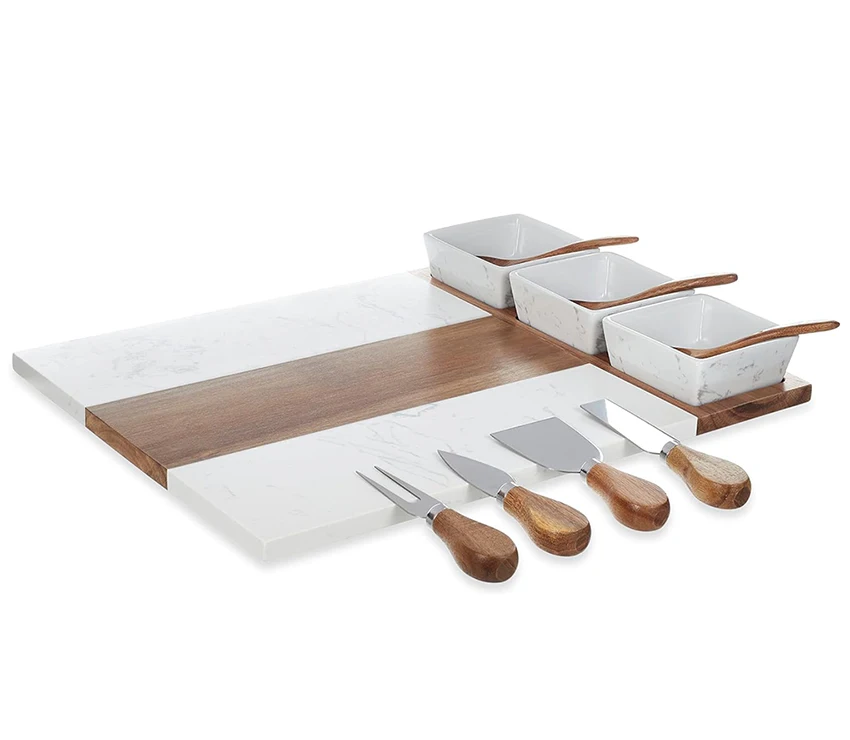 Хит продаж сервировочное блюдо деревянная мраморная сырная доска набор с 3 мисками ложки 4 сырных инструмента кухонные аксессуары