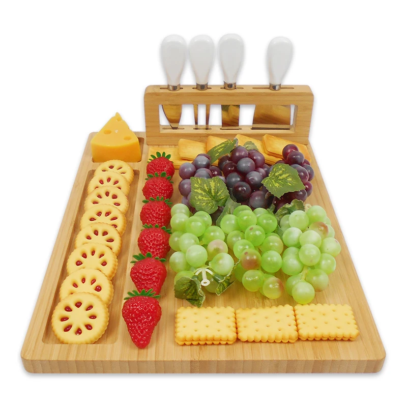 Оптовая продажа бамбуковый модный поднос для сыра маленькая доска набор ножей