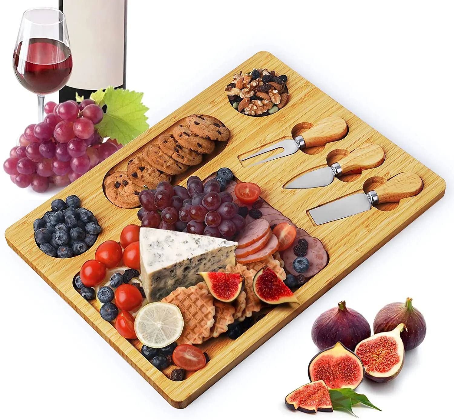 Сервировочный поднос для мяса Бамбуковая доска сыра набор из 3 ножей нержавеющей стали