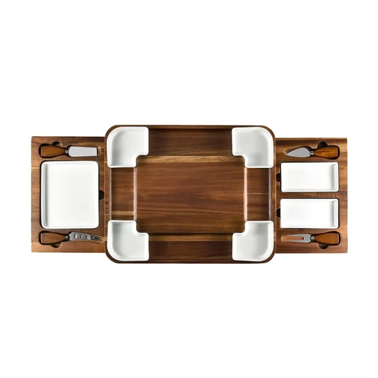 Роскошные многофункциональные сервировочные тарелки на заказ прямоугольные Сланцевые сырные набор деревянных сырных тарелок
