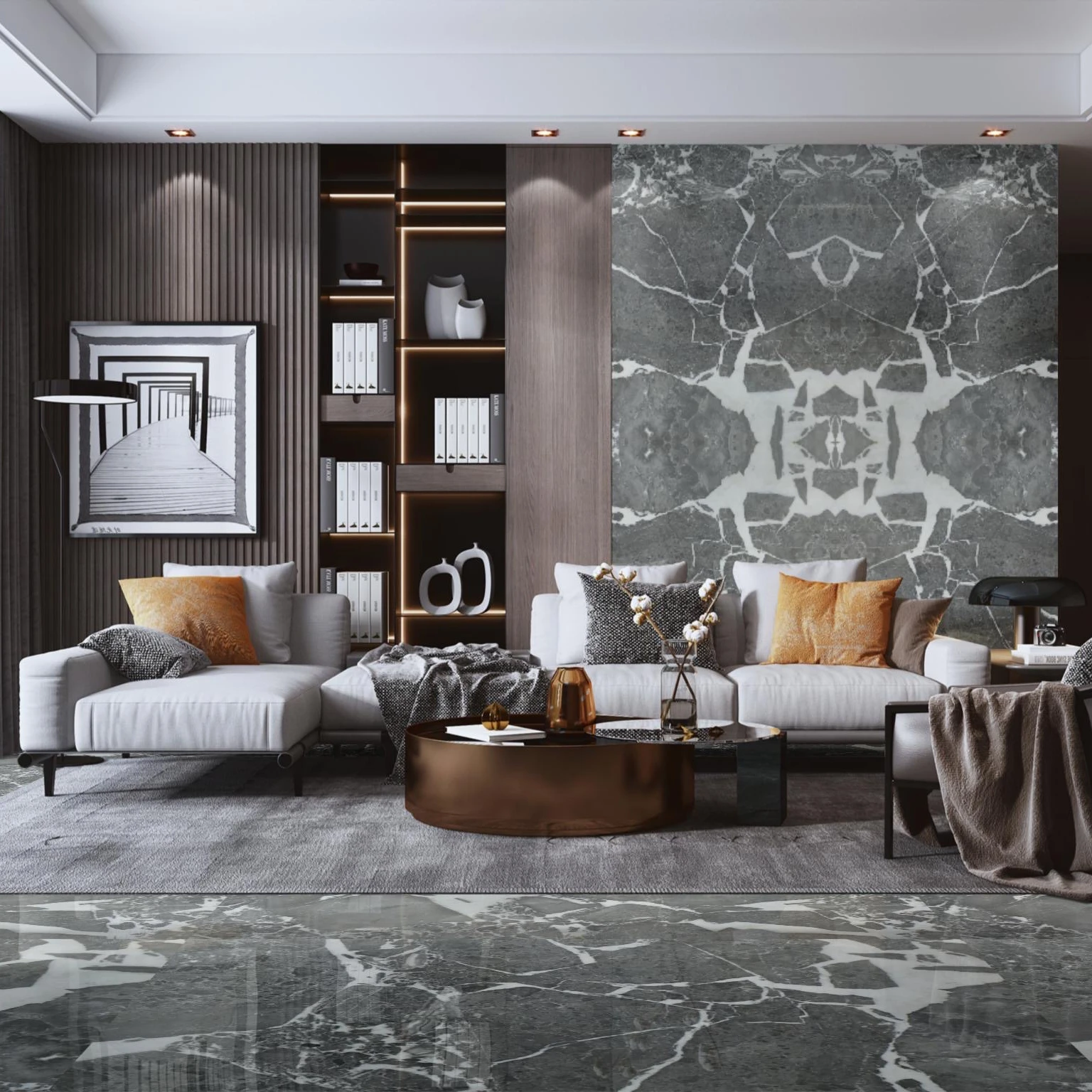 Интерьер виллы гостиная лобби дизайн Галактическое Аврора серая мраморная плитка и настенная отделка полированная Высококачественная Современная