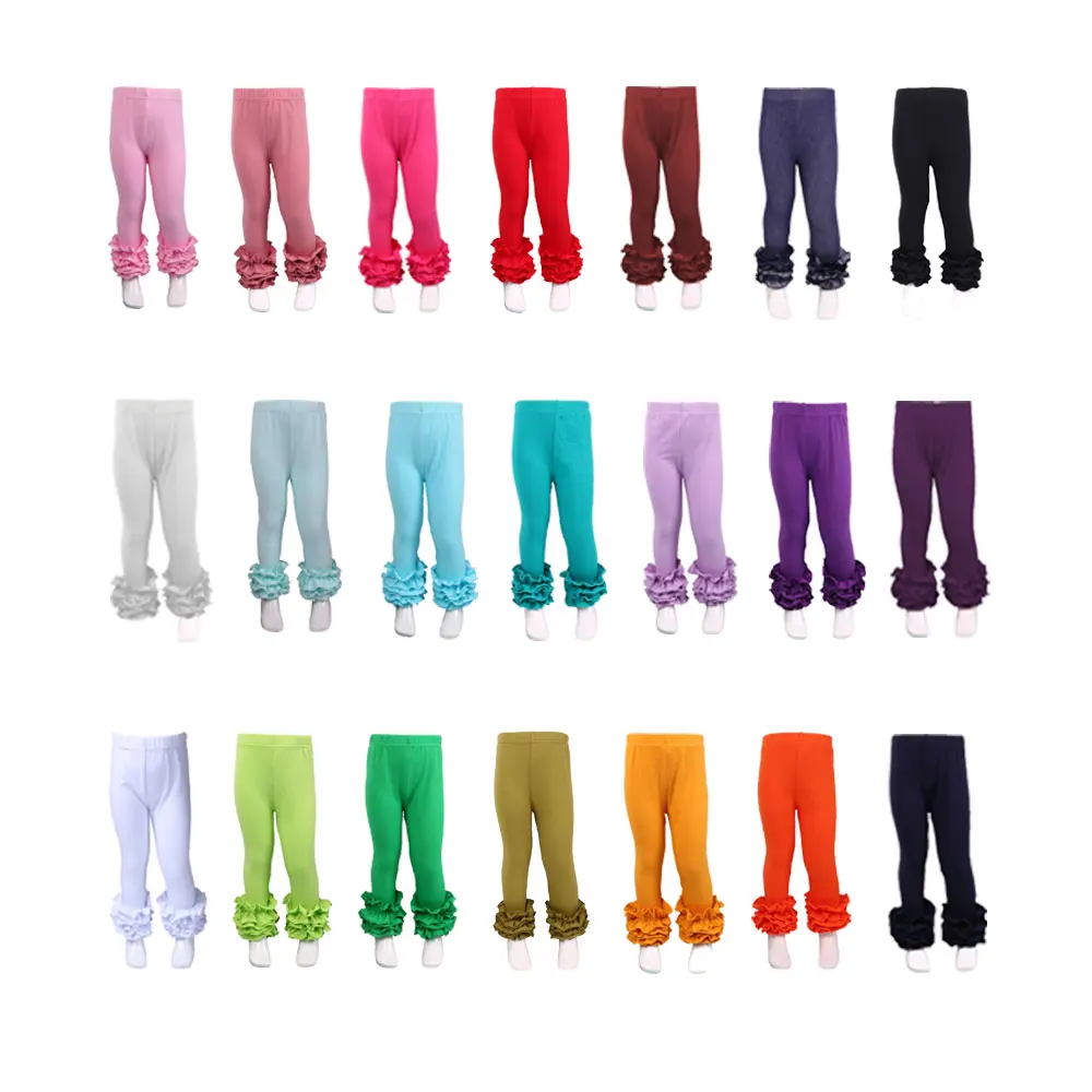 Самые продаваемые товары 2022 no moq RTS леггинсы с высокой талией однотонные оборками повседневные брюки для девочек