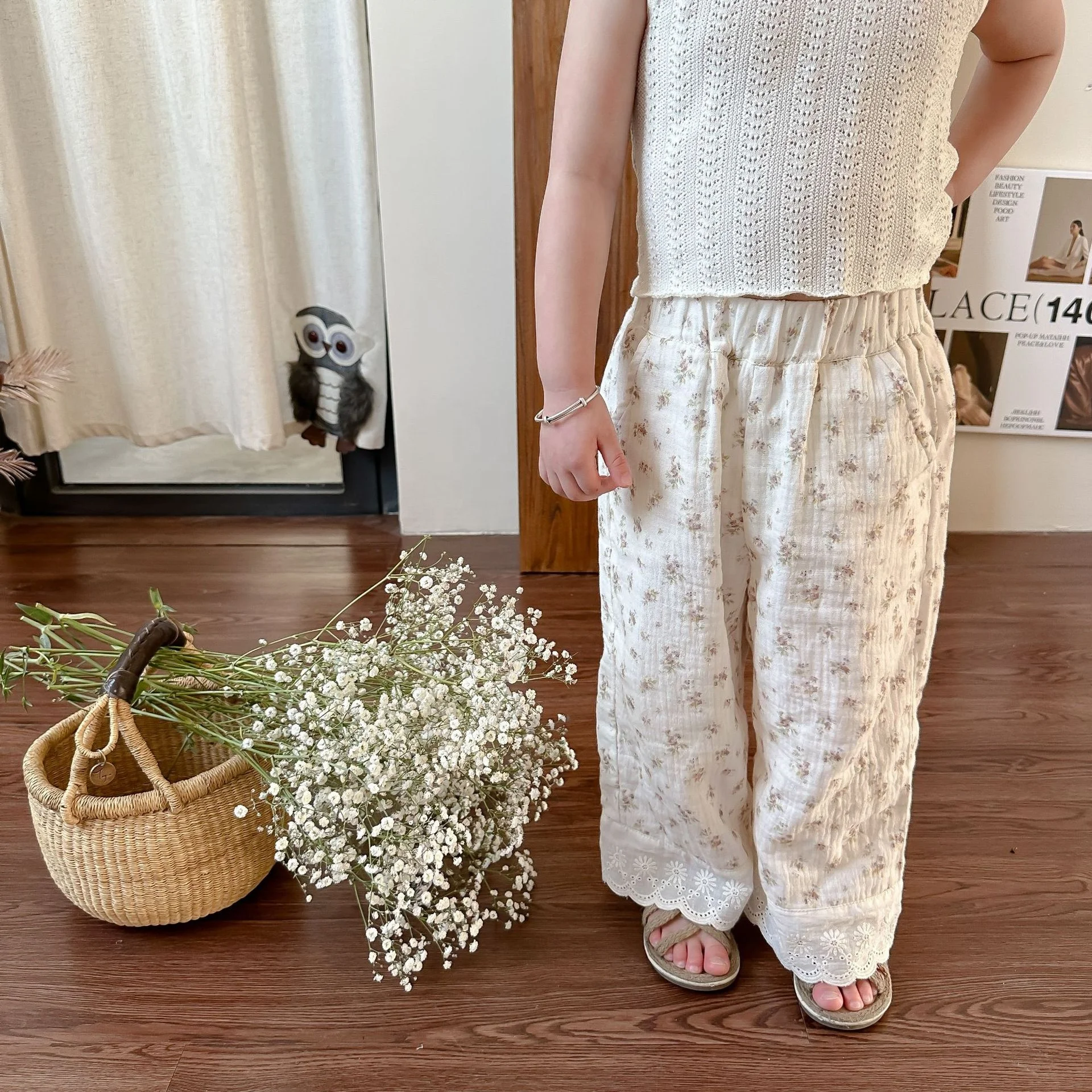 Оптовая цена индивидуальные штаны для девочек с цветочным рисунком Детские повседневные детские брюки маленьких