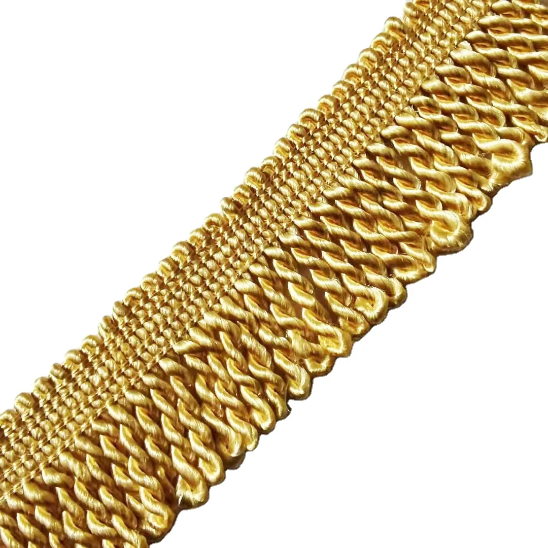 Bullin отделка бахромой Золотая занавеска с кисточкой для Австралии, Оптовая Продажа, Вышивка 3,5 см и 3 дюйма, 100% полиэстер, диван-BF-S0018