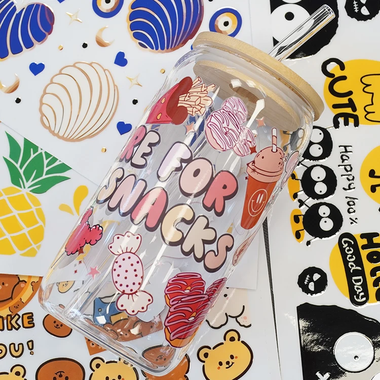 Индивидуальные упаковочные этикетки фирменная печать логотипа DTF UV Pet пленка в рулоне стикер листы обертки для стаканчиков Переводные Хэллоуина