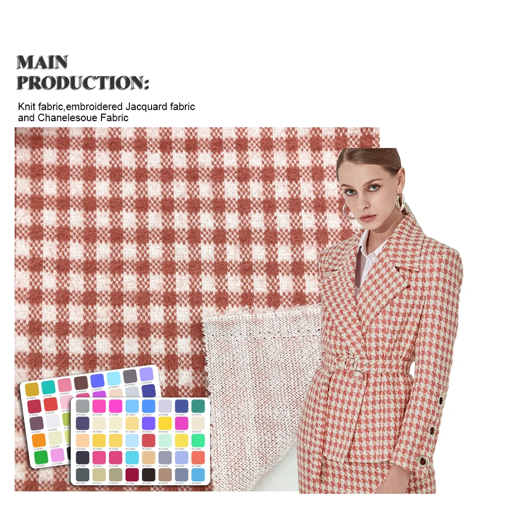 Лидер продаж модный дизайн 72% полиэстер 28% нейлон красный белый клетчатый жаккардовый трикотаж двусторонний твидовый материал для одежды 518,00 ₽ - 540,04 ₽