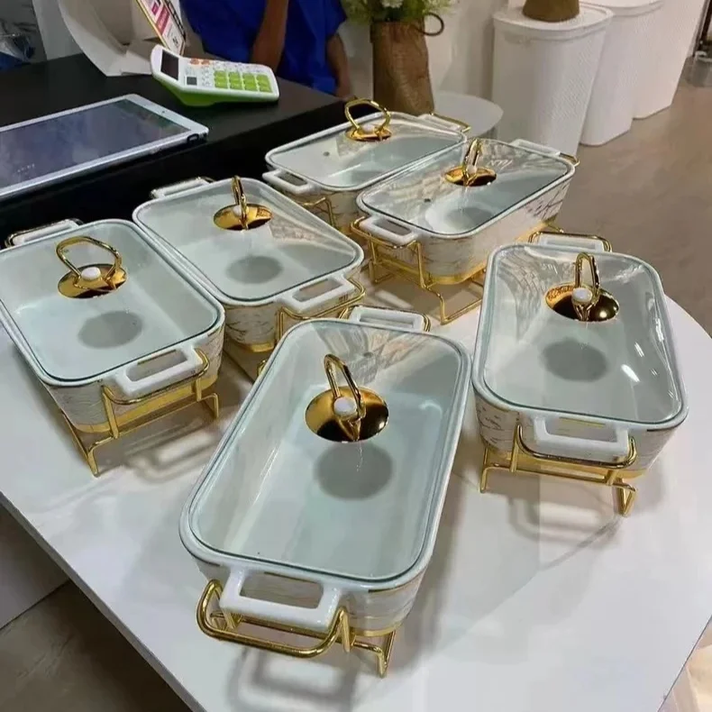 Прямоугольная Золотая керамическая кастрюля с золотой стойкой