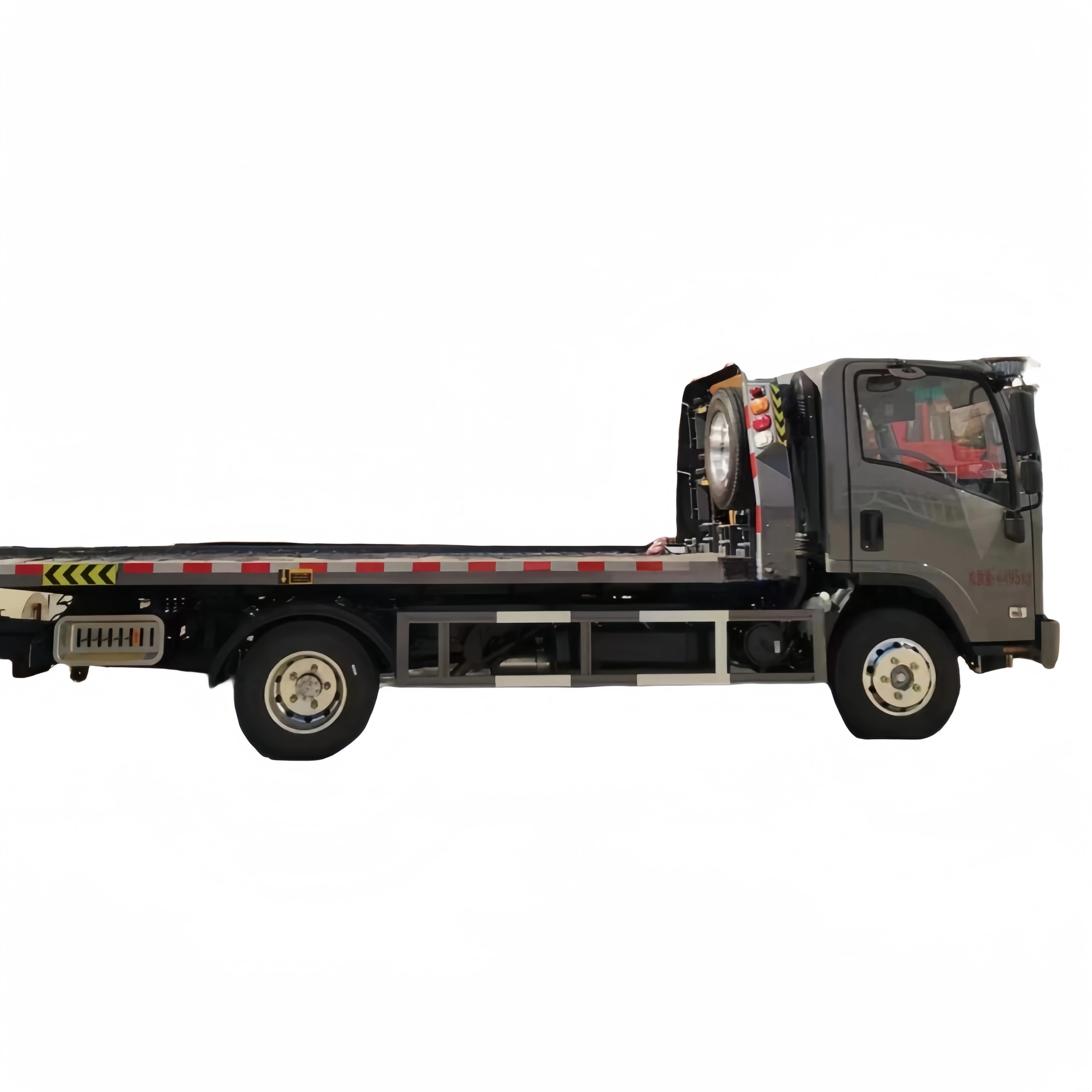 Chassis configuration: 2100mm single row, 3800 wheelbase, Weichai 160 horsepower engine, Wanliyang 6-speed, 7-ton rear axle, air horn, air conditioning, 7.50R16 vacuum tires, central door lock, electric doors and windows, remote key, multifunctional steering wheel, 120 liter aluminum alloy fuel tank. The flat panel adopts a pattern integrated board, one trailer two type, double-sided linkage operation device, 2 rear work lights, Novo 40KN hydraulic winch (21 meter steel wire rope), toolbox, equipped with 2 small cars, 1 pair of L-shaped tire racks, and 4 binding straps. Board length 5.6 meters, width 2.4 meters |