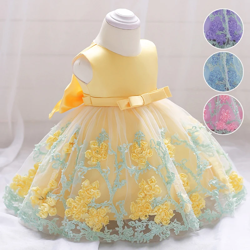 Детские платья для младенцев и детей ясельного возраста Платья с цветочным рисунком маленьких девочек принцессы аппликацией в виде лепестков фатиновые платья-пачки на свадьбу праздничное