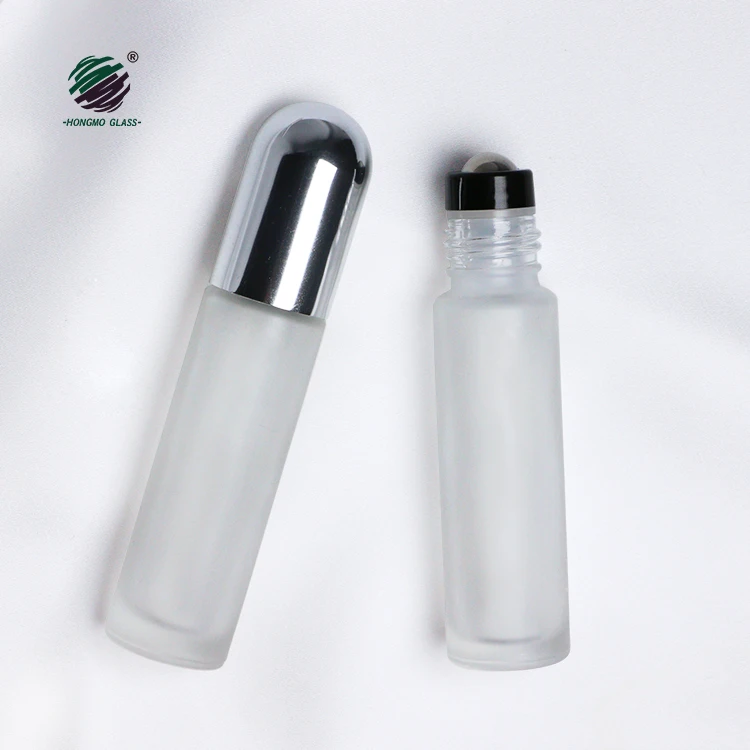 Оптовая продажа матовый прозрачный стеклянный роликовый флакон для ароматических масел со стальным пластиковым шаром 10 мл духов 0,15-0,35 $