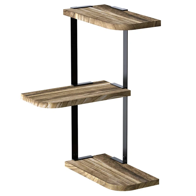 Трехслойная настенная угловая плавающая полка для хранения деревянная железная специй в ванной или гостиной