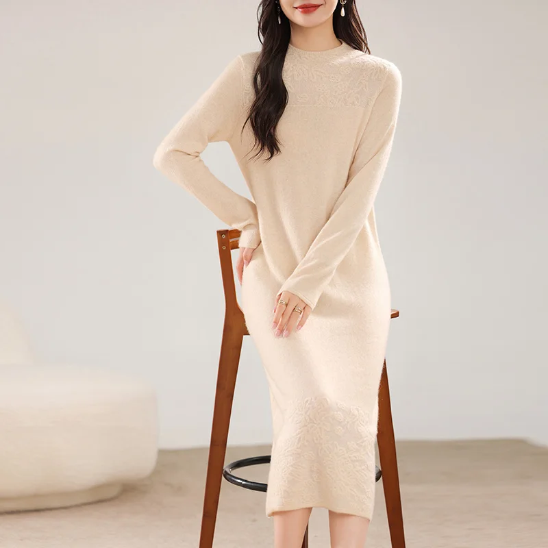 Лидер продаж Женское шерстяное кашемировое трикотажное платье-свитер модная универсальная длинная юбка из 100% шерсти