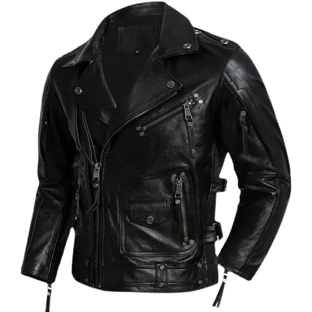 Пальто из натуральной кожи мужская новая куртка с лацканами на молнии обычный стиль черный красный коричневый повседневный двубортный верхний слой кожаная