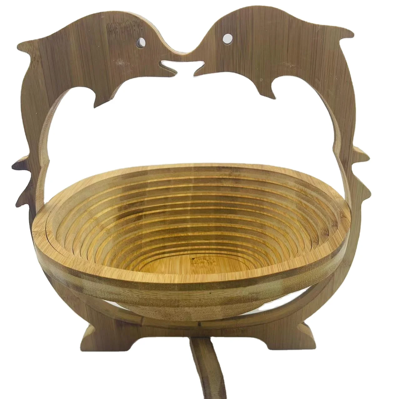 Оптовая продажа Экологически чистая бамбуковая корзина с ручкой в форме дельфина складная подвесная для хранения на заказ деревянная фруктов 235,85 ₽ - 256,79 ₽