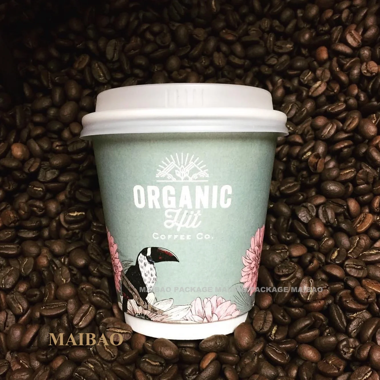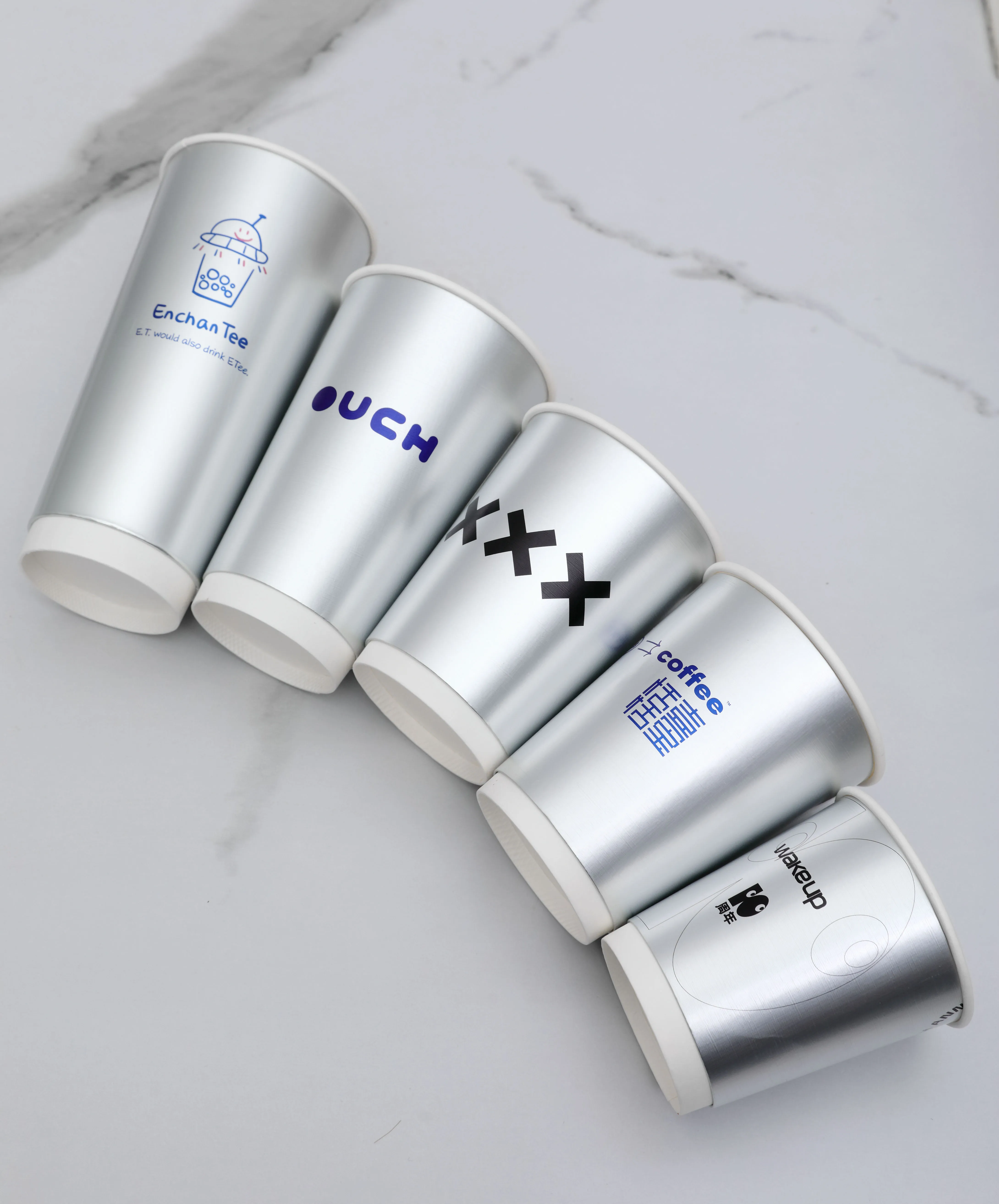 Одноразовый однонастенный бумажный стаканчик с крышкой и ложкой