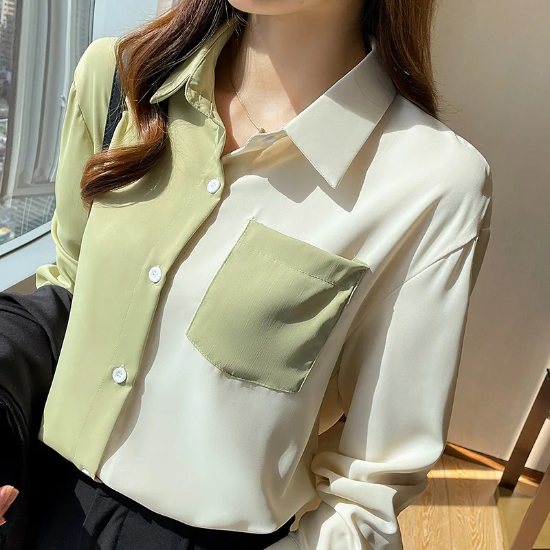 Женская рубашка в стиле Гонконг с принтом весна осень