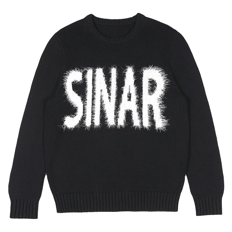 Мужской зимний жаккардовый пуловер с круглым вырезом на заказ вязаный Топ узором в виде букв свитер украшением 15,00-17,00 $