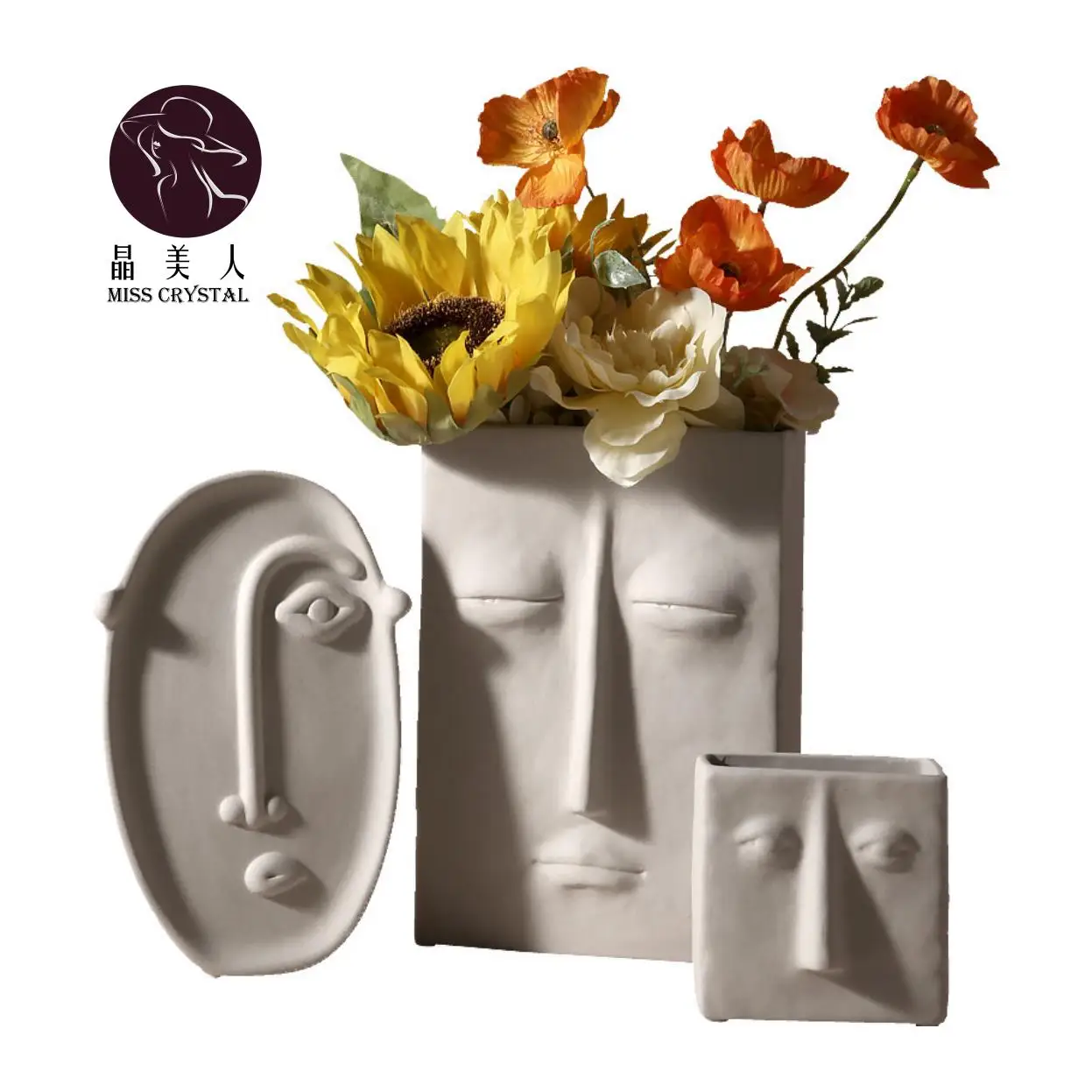 Керамические вазы в скандинавском стиле, Современные художественные украшения, ваза ручной работы с человеческим лицом, ваза для цветов в гостиной