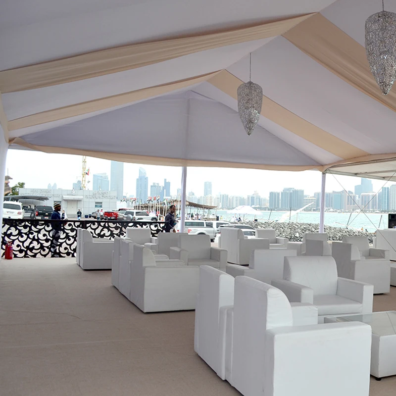 3.Elegant Roof Style: The tent features an elegant roof style, adding a touch of sophistication to any event. This design not only enhances the overall aesthetic of the tent but also provides ample shade and protection from the sun for your guests.