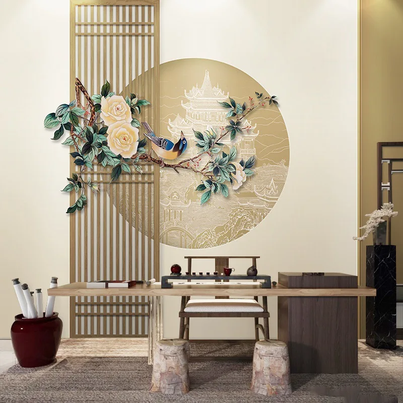 Древняя рифма обои в китайском стиле прямая трансляция фон 3D Магнолия Пион цветок и птица живопись Настенная ткань 662,43 ₽ - 1 324,85 ₽