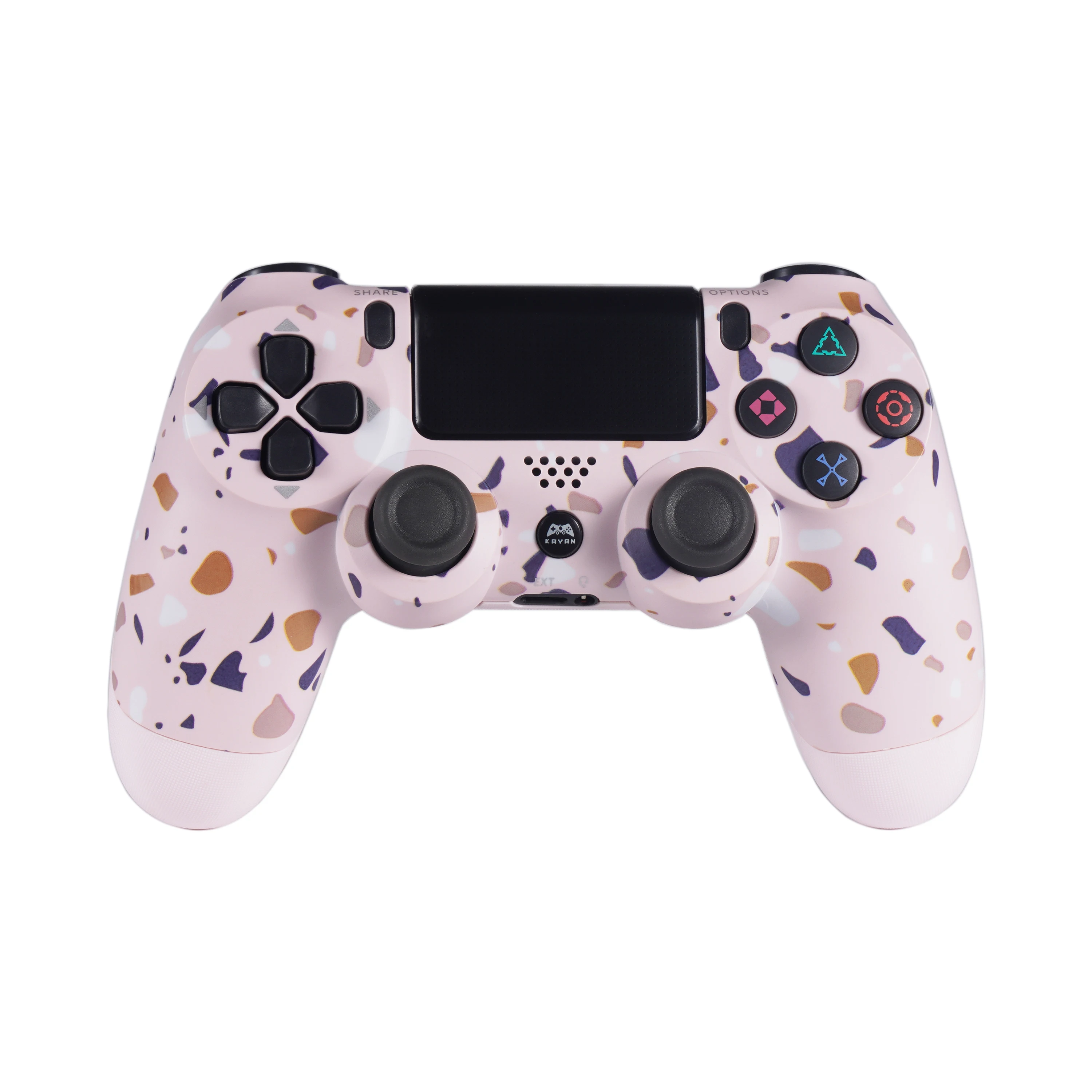 This product supports P4 game consoles. It is a dual-vibration wireless Bluetooth controller that uses a stable 5.0 solution to produce no delay and disconnection. It supports battery capacity customization, 3D joystick customization, packaging customization, and logo customization. It supports P4 game consoles, is compatible with some functions of P5 game consoles, is compatible with P3 game consoles, and is compatible with computers.