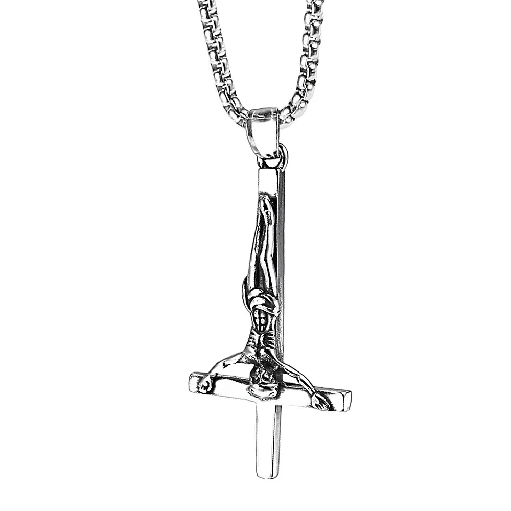 Трендовый унисекс Перевернутый крест Иисус кулон золотой и серебряный цвет из нержавеющей стали Латинский St. Peter ожерелье